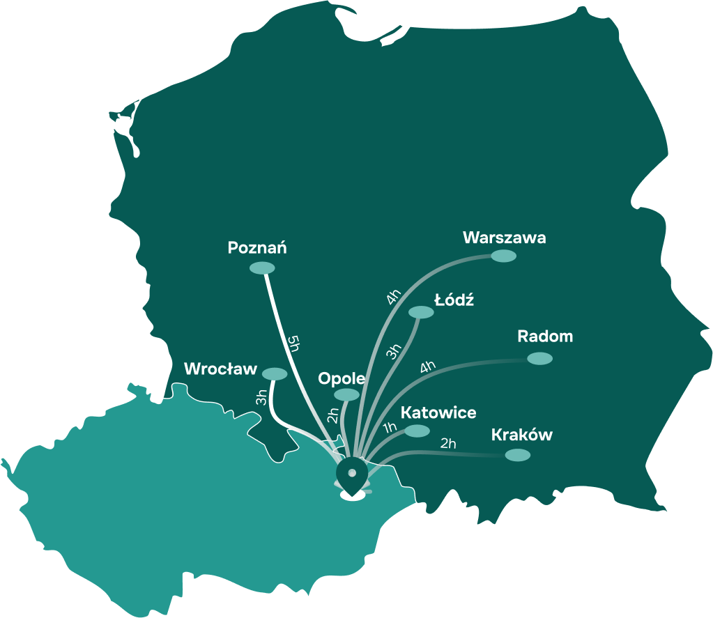 Oferujemy płatny transport z Warszawy, Krakowa i Katowic.