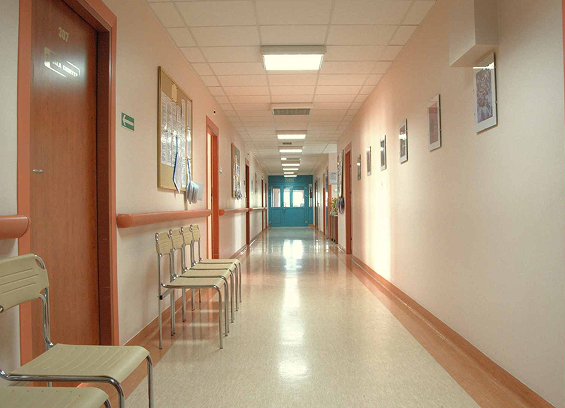 Przestronne korytarze, które prowadzą do prywatnych sal przeznaczonych dla pacjetnek.